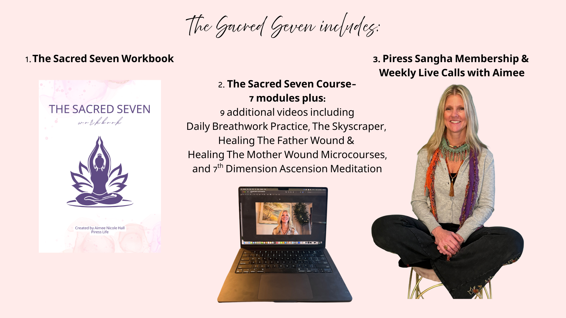 The Sacred Seven is that missing piece — a seven-module, soul-led journey that brings you home to your body, your heart, and your divine feminine power.
